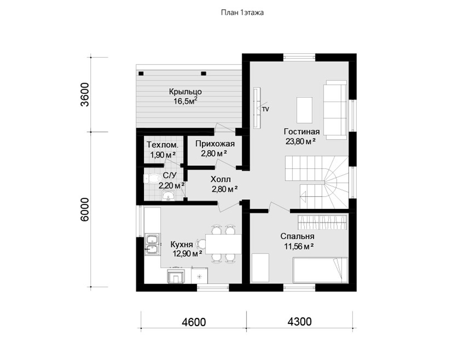1 этаж, площадь 74.46 м2 Планировка 1 этажа