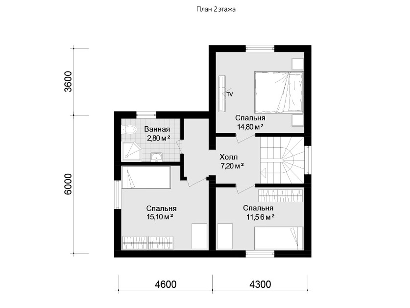 2 этаж, площадь 51.46 м2 Планировка 2 этажа