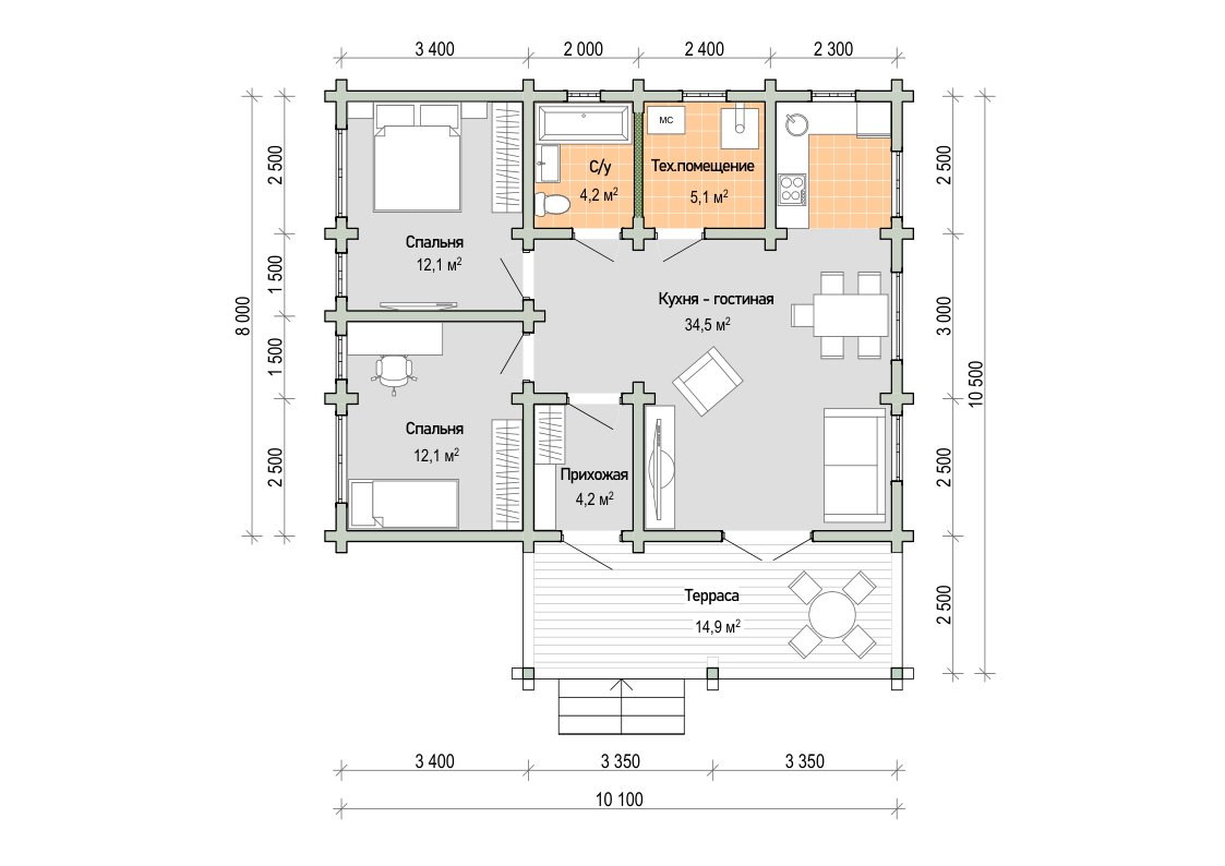 Проект "Радуга" представляет собой уютный и функциональный дом, идеально подходящий для комфортного проживания. С его размерами 8x9 метров и общей площадью в 72 квадратных метра, включая 2 просторные комнаты, этот одноэтажный дом предоставляет удобное жилое пространство в размере 64 квадратных метра.