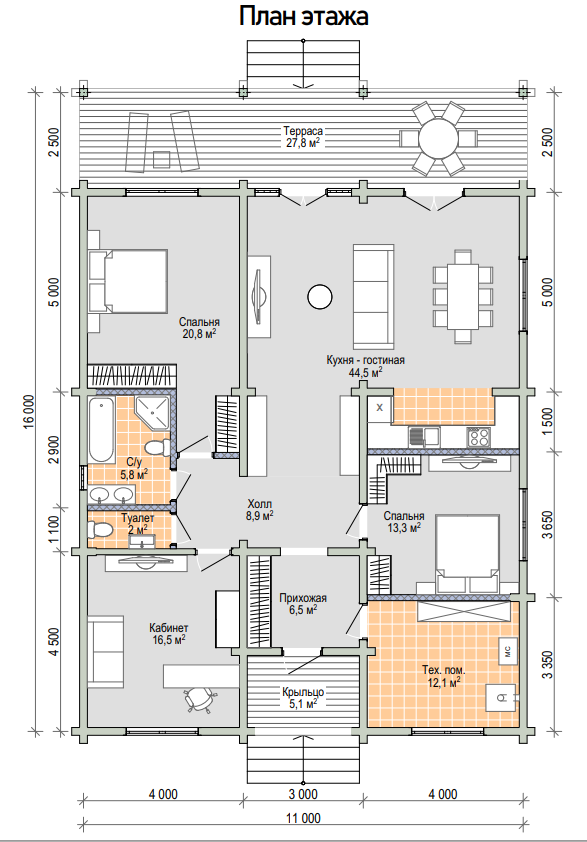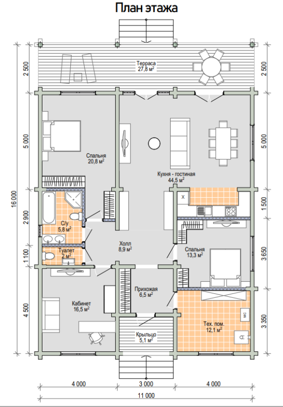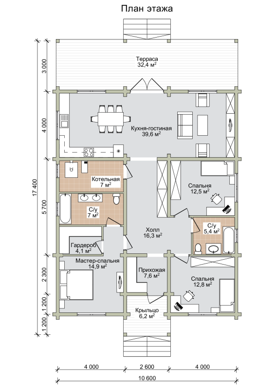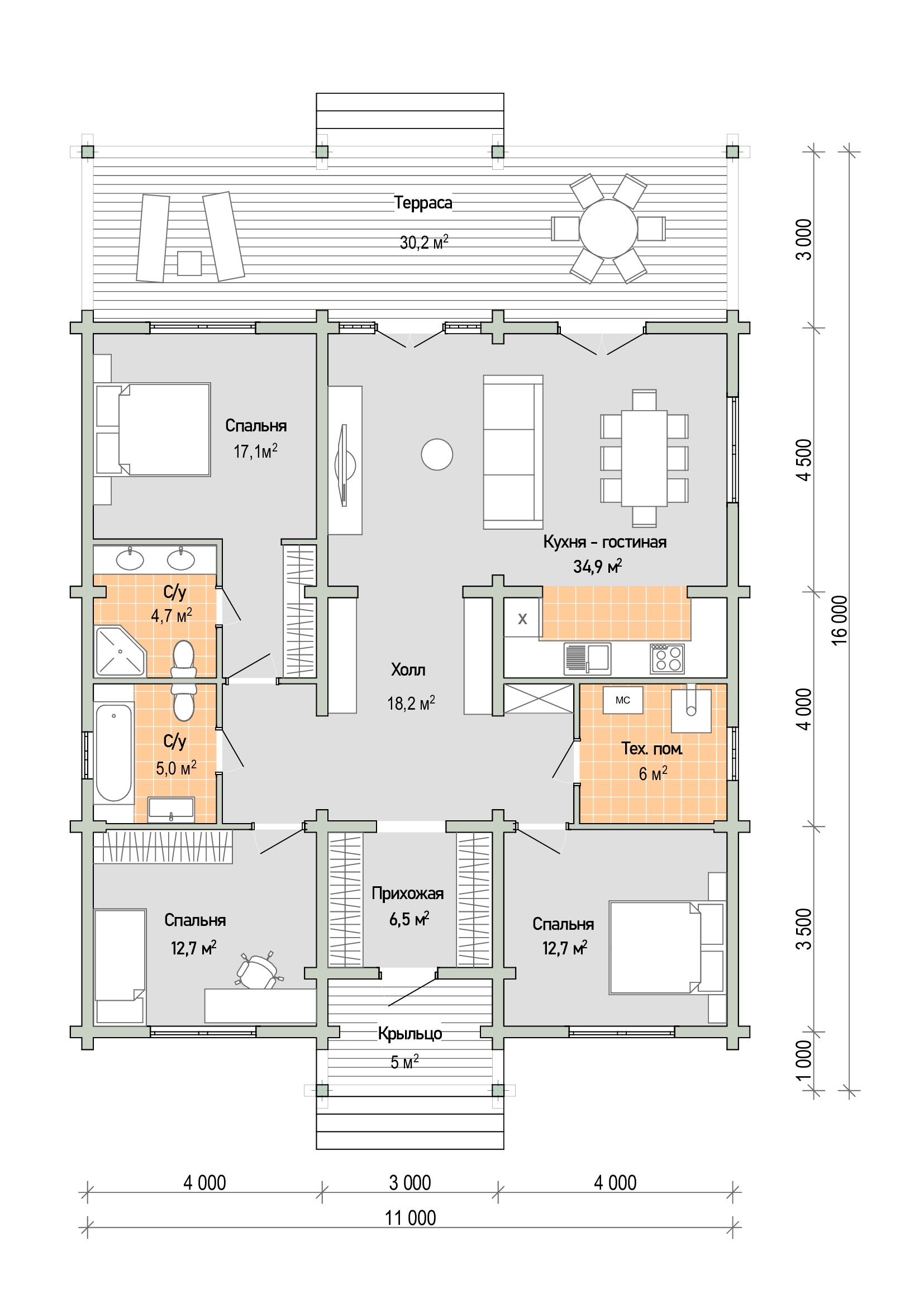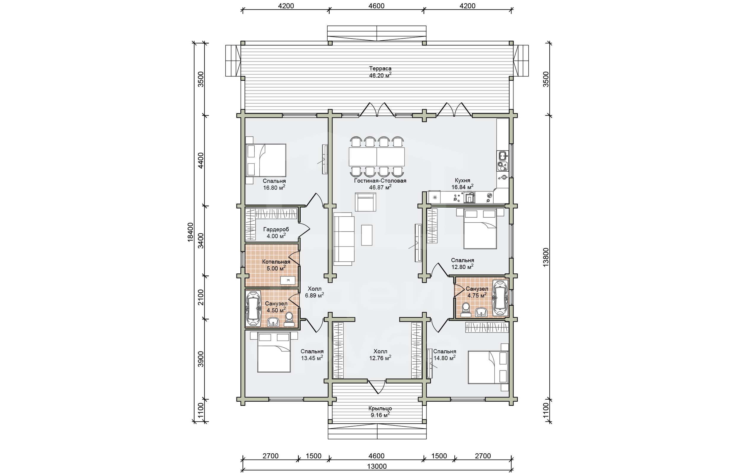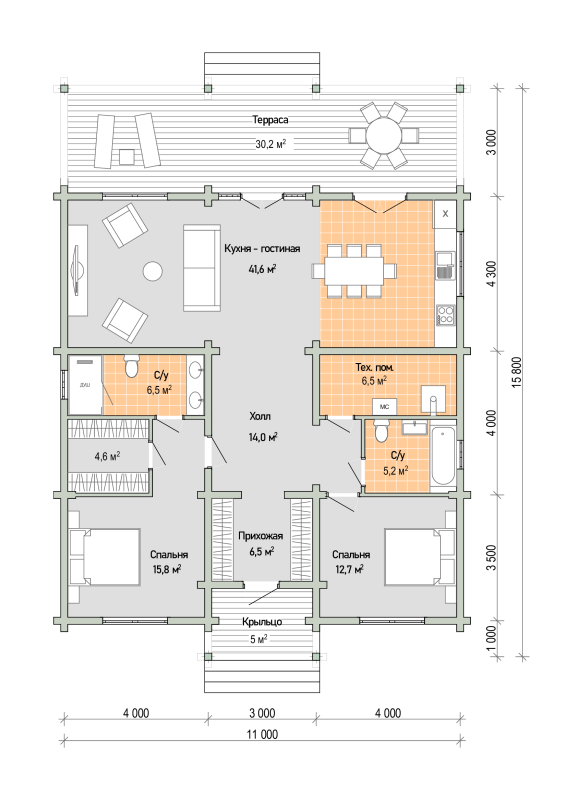 Практичная планировка включает функциональные зоны: кухню-столовую, уютные спальни и удобные подсобные помещения. Особое внимание уделено деталям — продуманная система хранения и грамотное зонирование делают жизнь в этом доме комфортной и приятной.