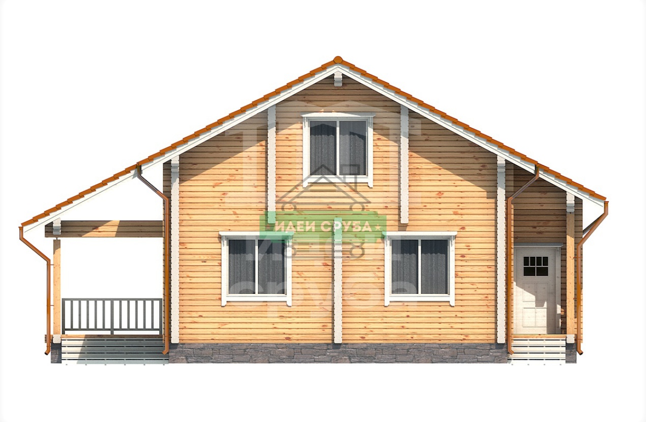 Дом выполнен с использованием оцилиндрованного бревна, что придает ему особый шарм и надежность. В этом проекте также предусмотрены котельная и мансарда, добавляя функциональности и простора вашему будущему дому.