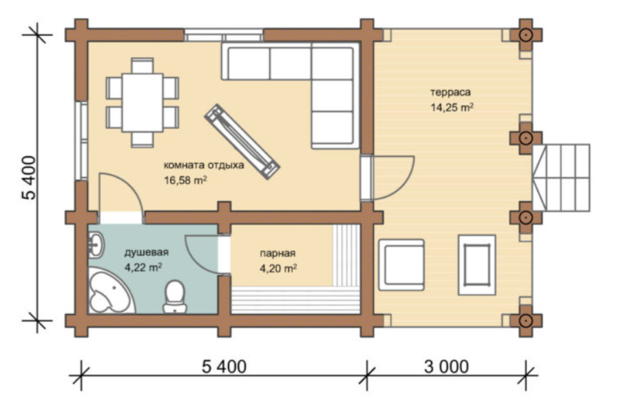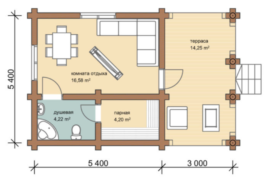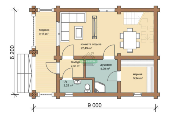 • Полная обработка всех пиломатериалов антисептиком перед монтажом