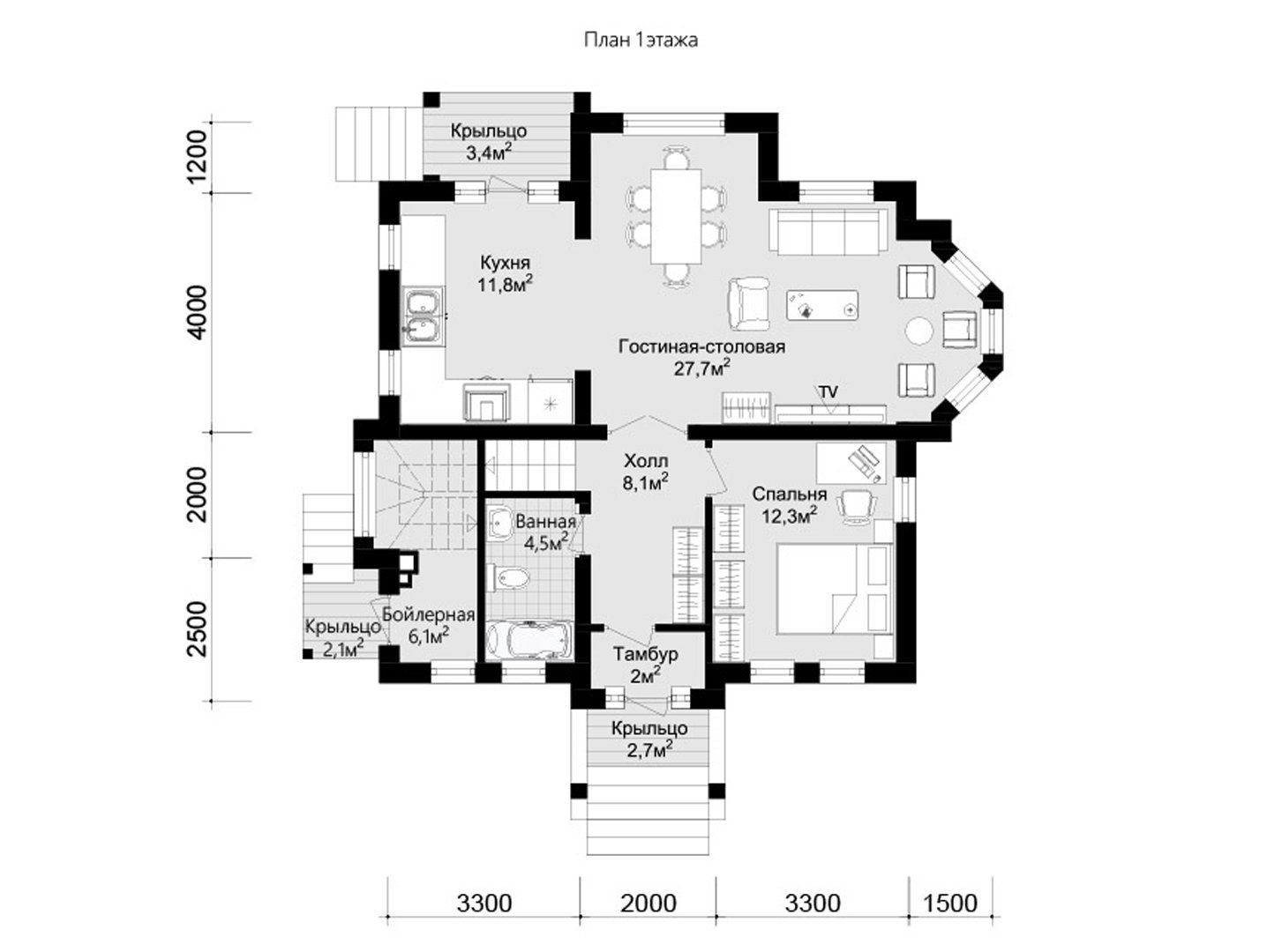 1 этаж, площадь 80.7 м2 Планировка 1 этажа